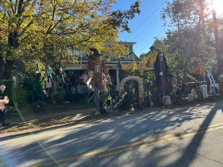 And since it’s spooky season, what better backdrop than this neighborhood with its grand turrets, sweeping porches, shadowy tree-lined streets and historic homes that seem to whisper tales of the past? We’ll even point you toward one of the most celebrated Halloween houses in the area — the one decked out in full Halloween splendor in Oakwood for all to admire.